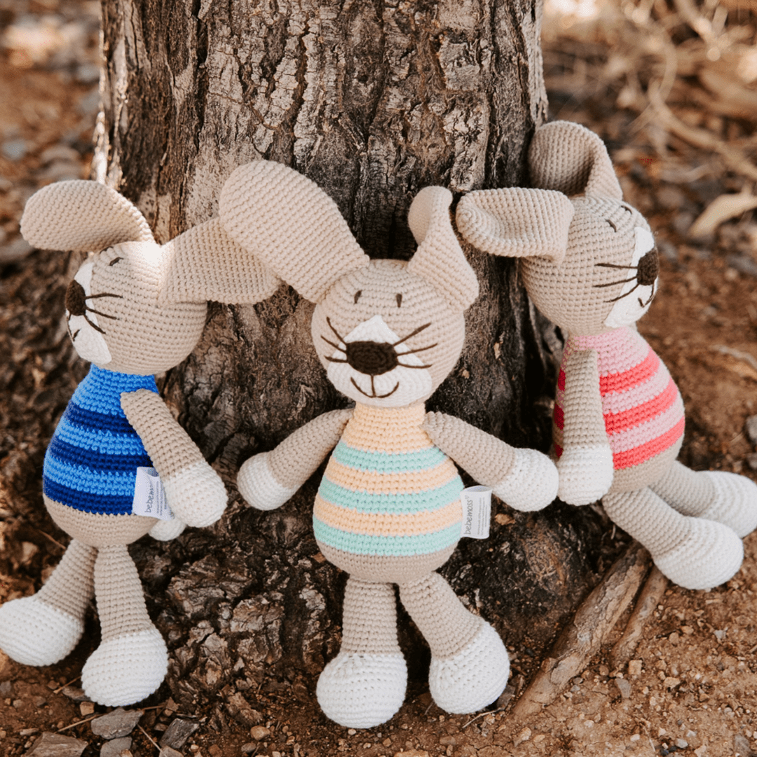 Hopping into fall fun, our classic bunny is a year-round favorite, now dressed for the season.