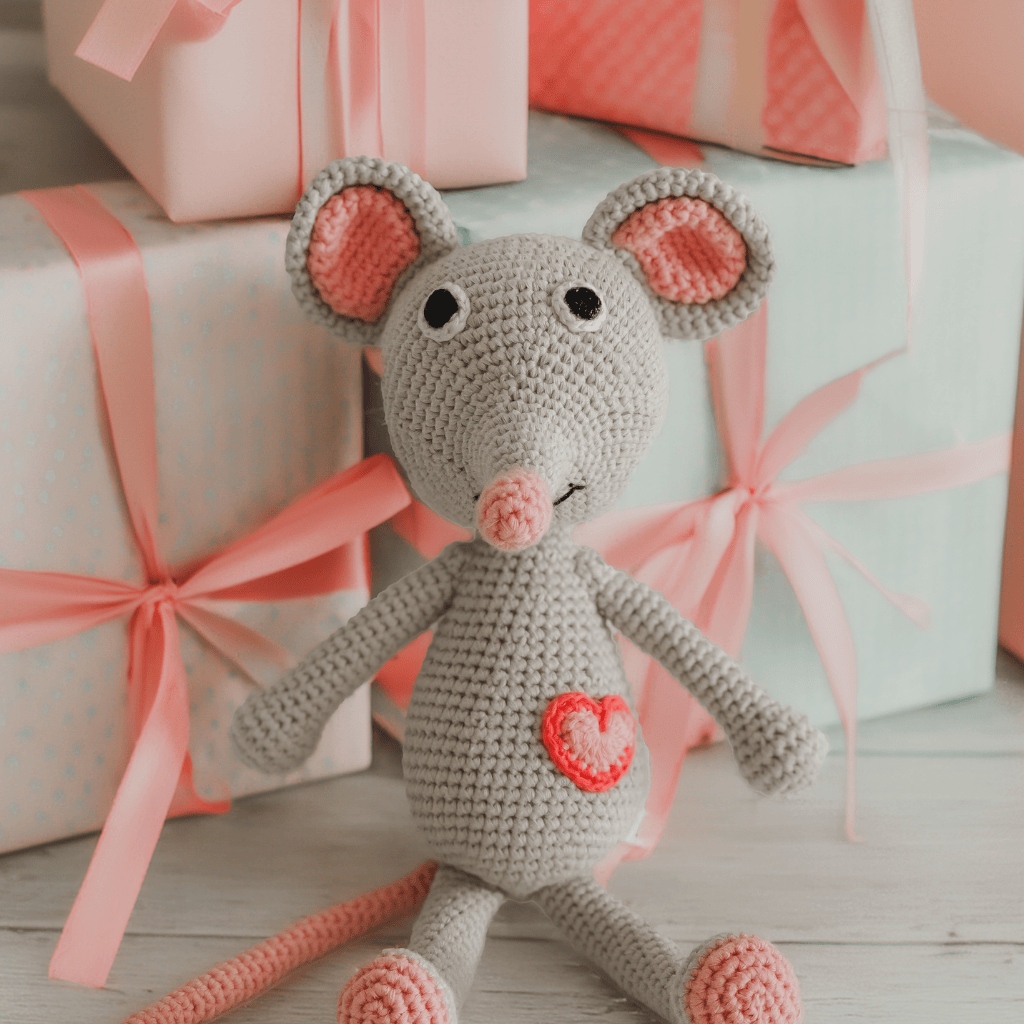 This adorable little mouse, with her embroidered heart and soft cuddles, makes a charming keepsake for magical holiday moments.