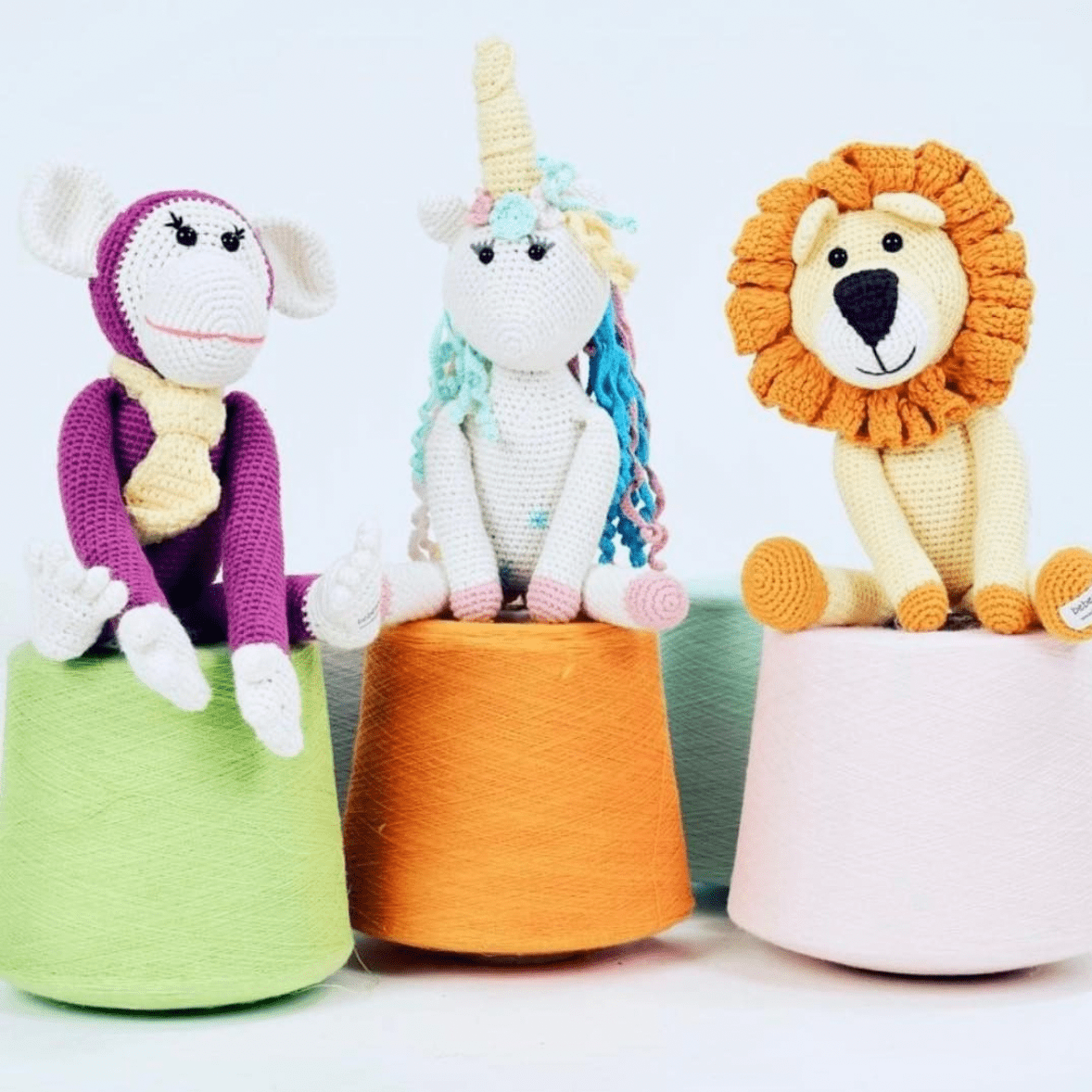 Hand-crocheted from hug-ready organic cotton yarn, our toys are designed to be easily recognizable for imaginative play (and even easier to clean!). We use sustainably sourced hypoallergenic polyfill stuffing made from recycled bottles. Each toy undergoes rigorous testing and meets safety standards like the EN71 toy safety standard for the European Union.