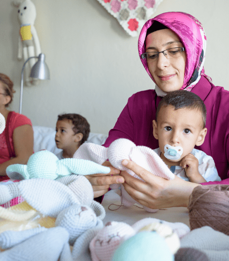 We give our artisan moms the flexibility to work when and how it works best for them. Everyone sets their own schedule. We offer job training for women who are new to crocheting. Our cheerful studio has a dedicated play area for anyone who needs help with childcare. Some of our mothers prefer to work at home where they can balance family life with their craftwork.